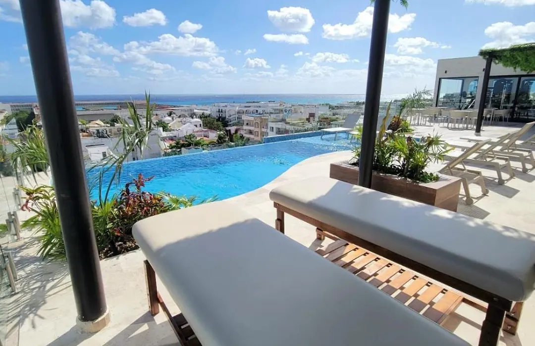 Este apartamento de 45 m², Fabulosa Vista Al Mar Desde La Piscina Infinita Playa del Carmen, también se encuentra a poco más de 5 minutos a pie del Quinta Alegria Centro Comercial. Este apartamento, situado a unos cuantos pasos del Kool Beach Club, ofrece una terraza donde los huéspedes pueden relajarse y disfrutar de las vistas del mar.